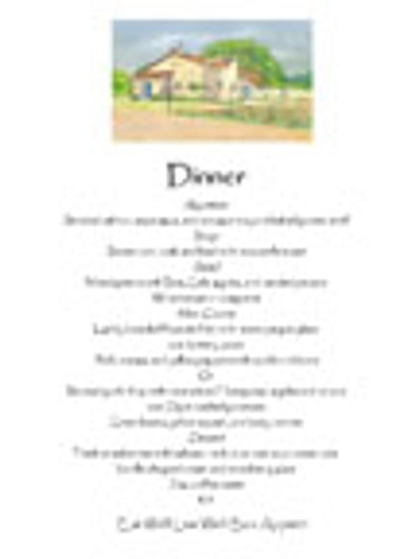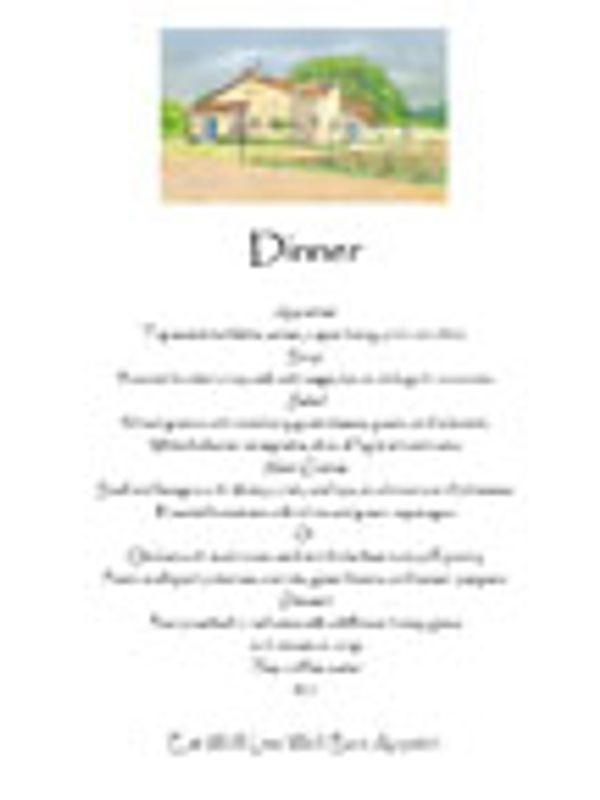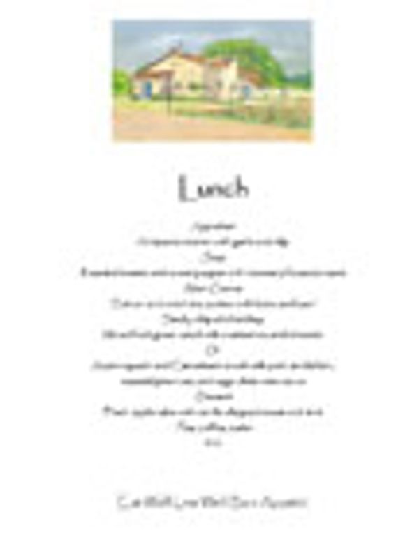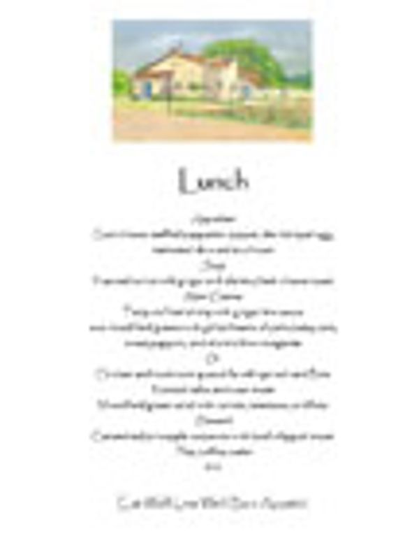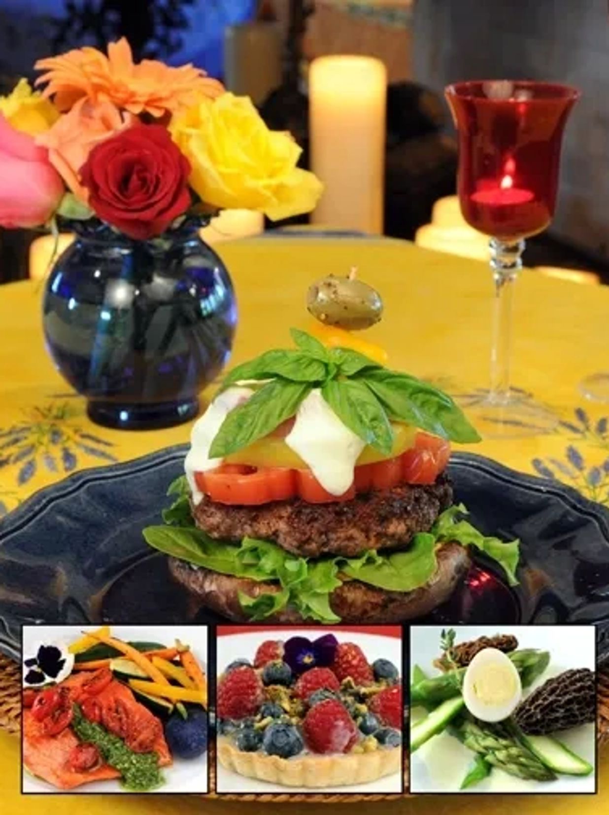 Each week our menu changes, built around fresh herbs and vegetables from our garden and seasonal choices hand-picked from markets. Evening meals at The Laurel Tree include five courses for a fixed price of $69, while lunch is lighter for $44. Our prices include desserts and beverages; there are no add on costs. All guests are served chef's -choice appetizers, soup, salad, and desserts but may choose between two main courses offered for the day. While we are unable to sell or serve alcoholic beverages in our community, you are welcome to bring your own wine and we will provide wine glasses and corkscrews at no charge. Following are sample menus...but remember, our menu is never the same from week to week.